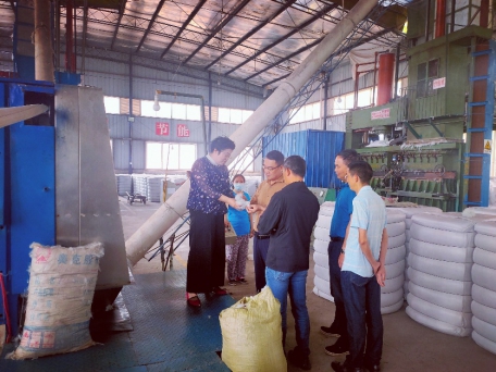 上午11點左右,鄧董事長一行到達大英縣,隨即深入化纖廠進行考察,先后走訪了化纖廠的車間和廠區,仔細了解化纖廠現下生產情況及新冠肺炎疫情影響下的行業現狀。隨后,鄧董事長帶領考察團一行與化纖廠管理層進行了深入溝通,進一步了解了化纖廠的產能和經營規劃。在溝通中,渝能化纖廠負責人李玉首先忠心感謝四川省棉麻公司長久以來給予化纖廠的支持和幫助,同時表示,在新冠肺炎疫情影響下,企業受到較大沖擊,企業也在積極尋找出路,期望能和四川省棉麻公司進一步合作。考察團認真聽取了李玉的介紹,期望化纖廠能盡快提出可行性方案,為下一步合作打下基礎。